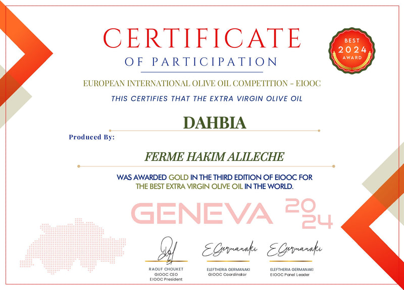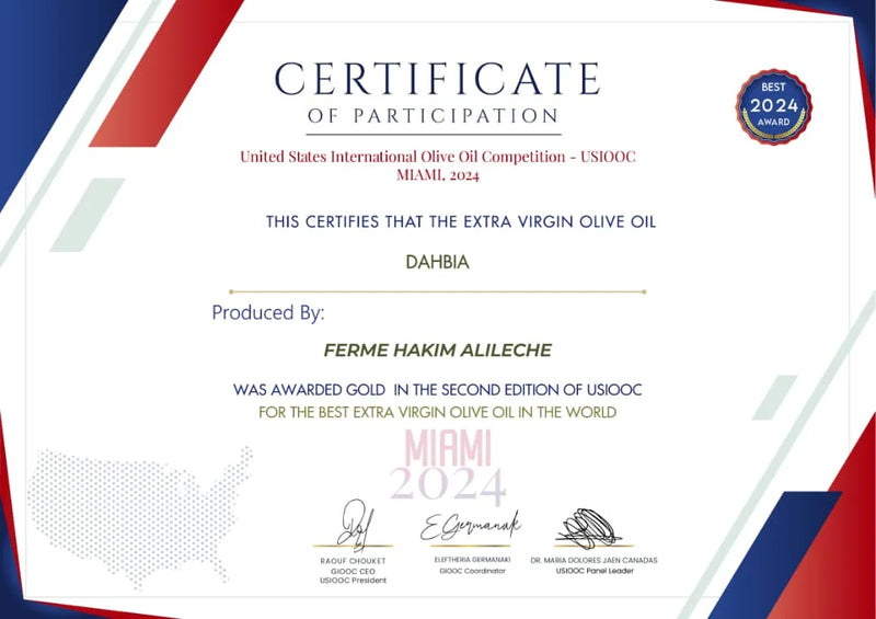 Our Premium Quality Extra Virgin Oil Dahbia is the freshest, most flavorful olive oil for anyone who loves delicious food and a healthy lifestyle. It’s a culinary gem that has garnered prestigious gold awards across the globe (Copenhagen 2024, Athens 2023, Dubai 2022, and many more).